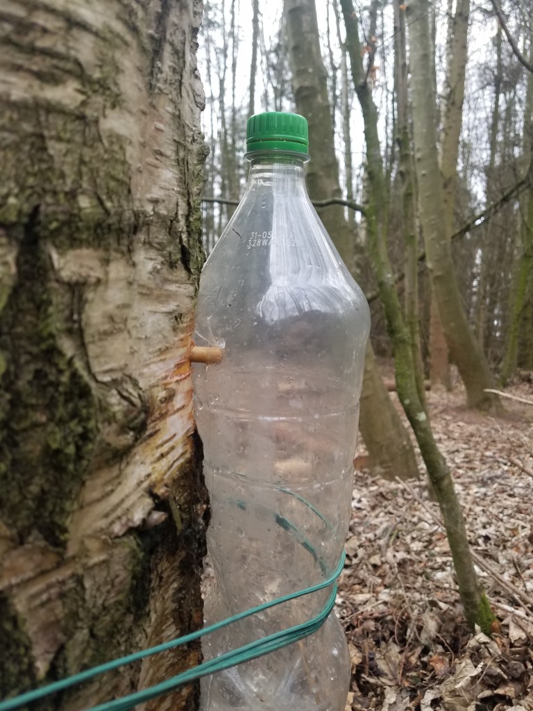 We got some birch sap too as the sap rose. It was very fiddly to get birch sap flowing but we eventually managed to collect 3/4 litre overnight.