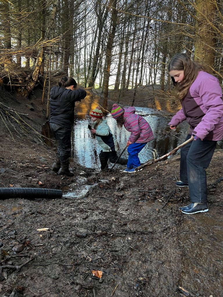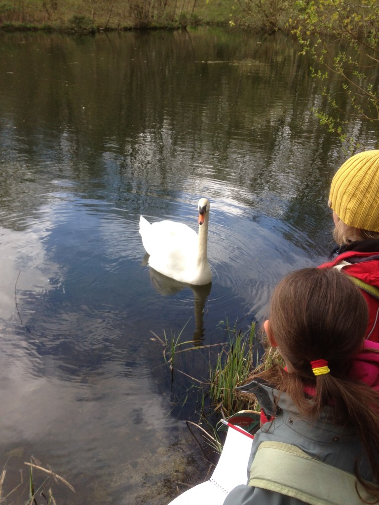 We started thinking about birds in March, playing games like Pass The Grub, another creation from the games team, to feed hungry baby birds and learn the 5 voices of birds. Kim Nisbet, a local artist joined us to make magical birds from nature and a giant nest that was really fun! Our visit to Birnie Loch to survey the birds was made all the more magical by the swans.