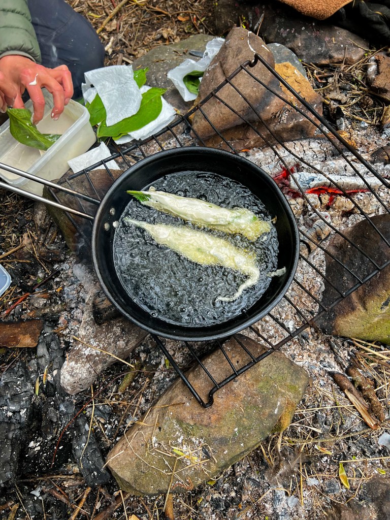 We had parents visits in June so they could sample our favourite foraged dishes – comfrey fritters and nettle pancakes. Oh, and they enjoyed hearing our golden moments from the year and seeing our camp. I think they enjoyed the family sit spot the most!
