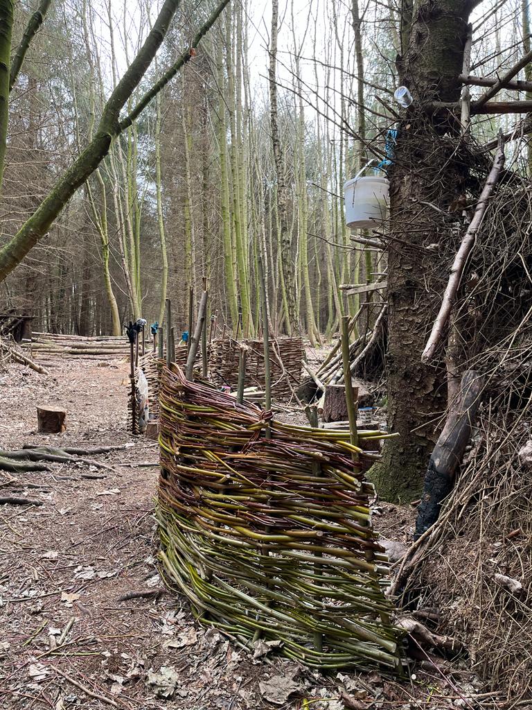 … and at camp we built a willow fence and a storytelling shelter. But …