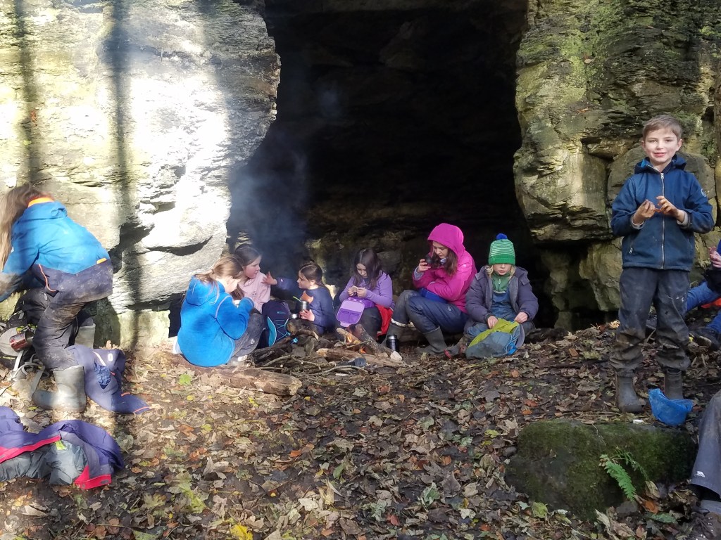 We love the cave at Craighall Den and went back in time for the Samhain festival to make charcoal and chalk paint for our cave art.