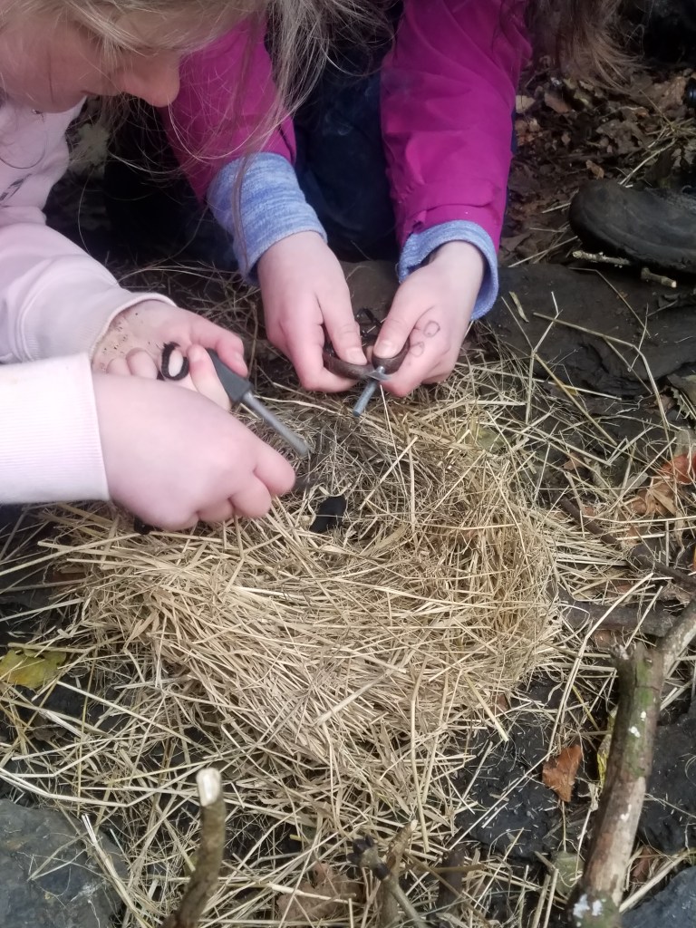 Practising the art of making fire with dry tinder materials in winter takes a lifetime to perfect. The tinder can never be too dry! No two fires are the same, one thing it always teaches us however, is patience. And its so satisfying to sit round a fire you have lit.