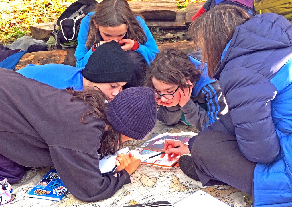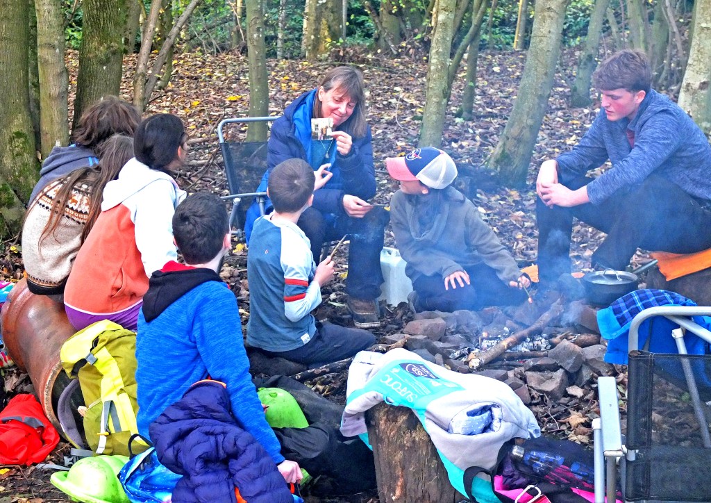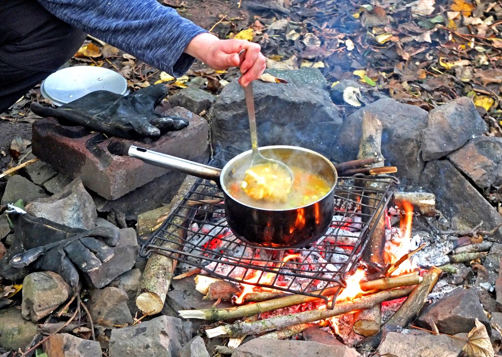 Apples don’t go unnoticed by us! We collected fallen apples to make apple crumble over the fire – not a drop was left after snack.