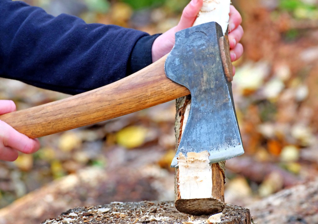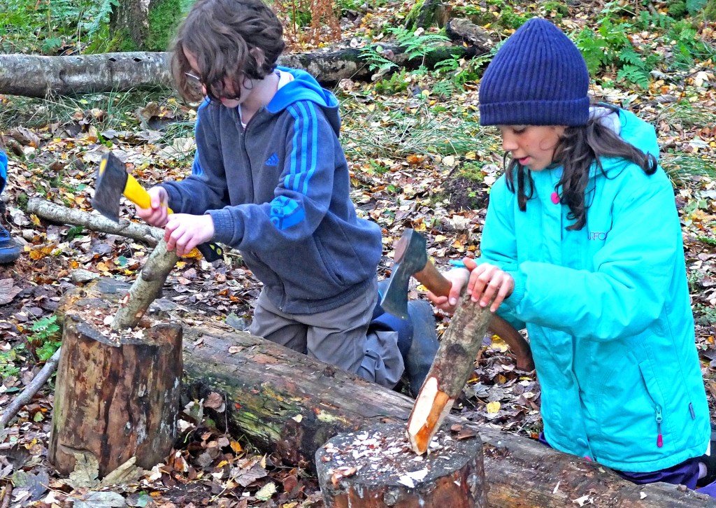 We prepared birch logs for a carving project learning the skill of axe work.