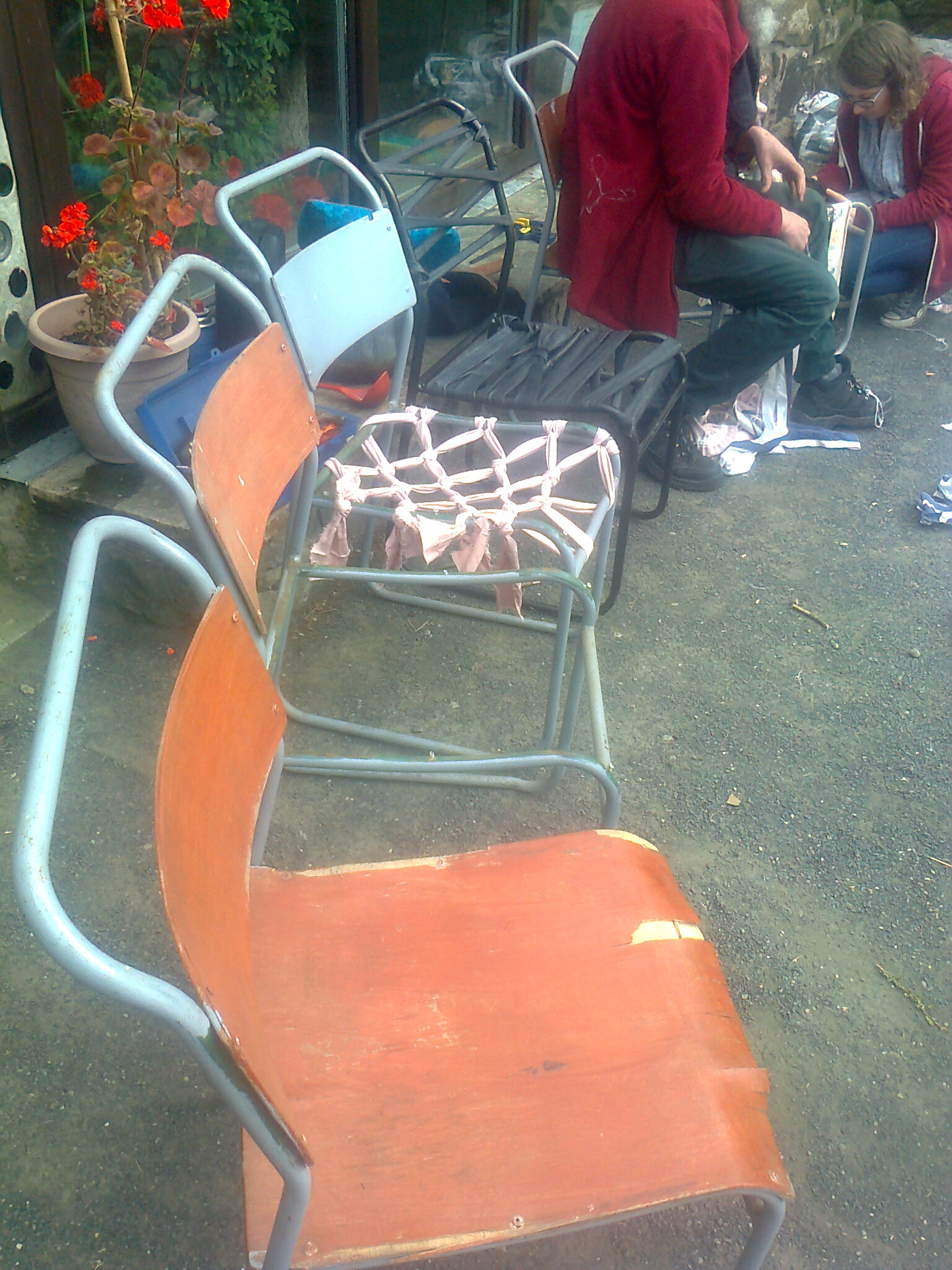 The first of the events was in April when we transformed old dated metal-framed chairs by using waste materials such as bicycle inner tubes and fabric – we created functional fun “new” chairs! The skills are applicable at home and no specialised tools or equipment are necessary. Also an opportunity to see our newly-covered yurt, which is very smart!